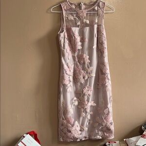Adrianna Papell Pink and Gold Sheath Midi Dress