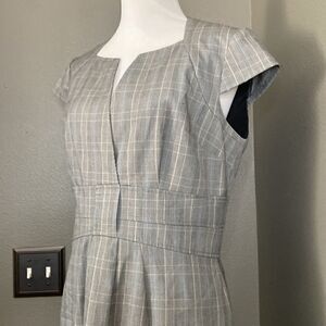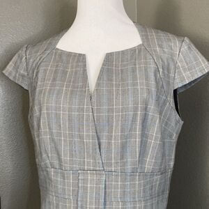 Adrianna Papell Pinstripe Plaid Sheath Dress grey blue