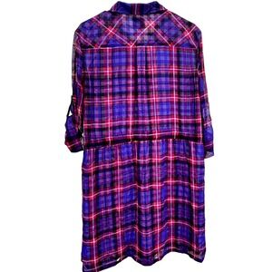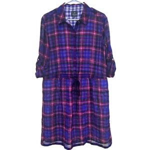 Adrianna Papell Plaid Overlay Drawstring Shirt Dress Roll-Tab Sleeve - Large