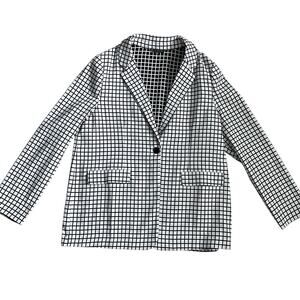 Adrianna Papell Plus Stretch Black & White Checkered One Button Blazer Size CL