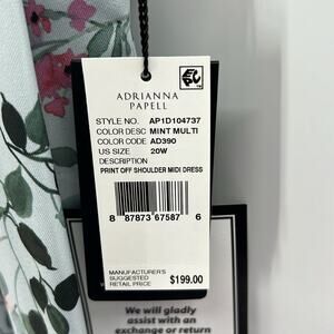 Adrianna Papell Print Off Shoulder Midi Dress - Mint Multi - 20W - NWT