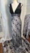 Adrianna Papell Prom Dress Evening Gown Silk Silver & Black Open Back Deep V