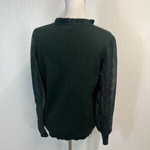 Adrianna Papell Pullover Sweater Top sz Medium Hunter Green Lace Dressy Stretch