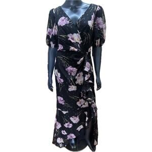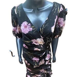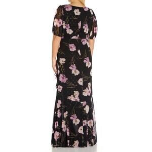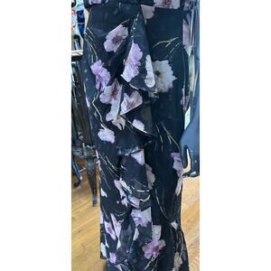 Adrianna Papell Purple Floral Print Chiffon Ruffle Gown Black Size 8 NWT $229