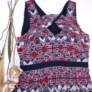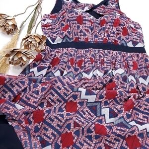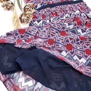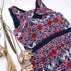 Adrianna Papell Red Blue Sheer Boho Dress 14