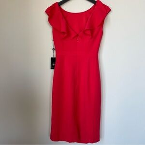 Adrianna Papell Red Bow Belted Sheath Dress Petite Size 6P