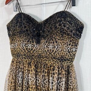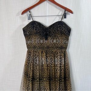 Adrianna Papell Red Carpet Leopard Chiffon Beaded Ball Evening Gown Sz 12