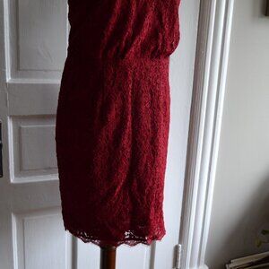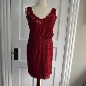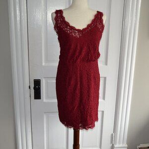 Adrianna Papell Red Lace Bodycon Cocktail Mini Dress Size 8