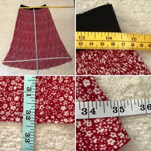 Adrianna Papell Red Pleated Midi Skirt Size Small Lightweight Lined Floral