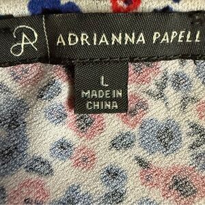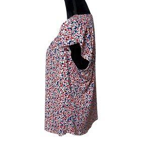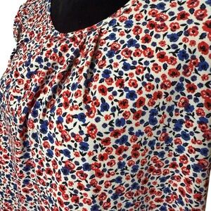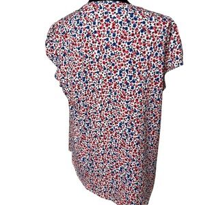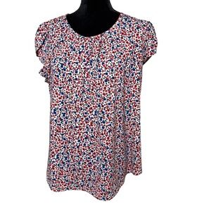 Adrianna Papell | Red and Blue Floral Cap Sleeve Blouse with Stretch | Sz L