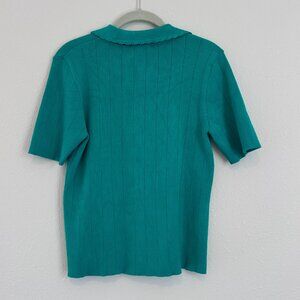 Adrianna Papell Rib Cable Short Sleeve Collar Sweater, Green, Size Medium