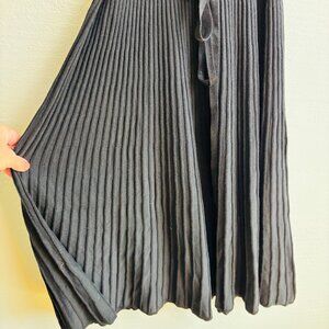 New with tags! Sleek and feminine Adrianna Papell black ribbed knit midi dress, size L, MSRP $199. This elegant piece blends timeless tailoring with soft stretch comfort. Features a flattering V-neckline, flutter cap sleeves, self-tie belt, and flowy pleated skirt that moves beautifully with every step.