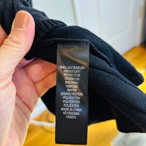 New with tags! Sleek and feminine Adrianna Papell black ribbed knit midi dress, size L, MSRP $199. This elegant piece blends timeless tailoring with soft stretch comfort. Features a flattering V-neckline, flutter cap sleeves, self-tie belt, and flowy pleated skirt that moves beautifully with every step.