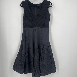 Adrianna Papell Rosette Ruched Fit & Flare Dress Black Party Cocktail. Gently used no stains or flaws. Please see photos for details