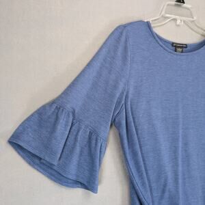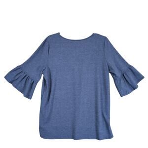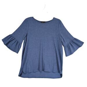 Adrianna Papell Ruffle 3/4 Bell Sleeve Hi-Lo Top Heather Chambray Women's L Boho