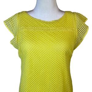 Adrianna Papell Ruffle Diamond Embroidered Lace Yellow Mini Dress - Size 12