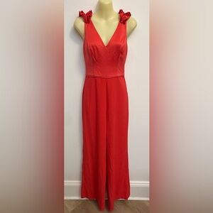 Adrianna Papell Ruffle Shoulder Stretch Crepe Jumpsuit in Calypso Coral
