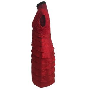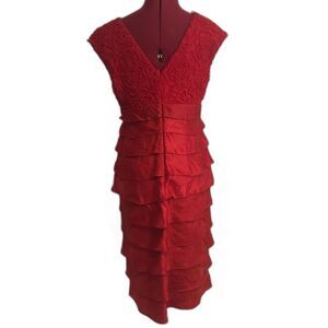 Adrianna Papell Ruffle Tiered V-Neck Cocktail Dress Women's Size 6 Scarlet Red