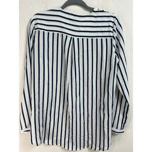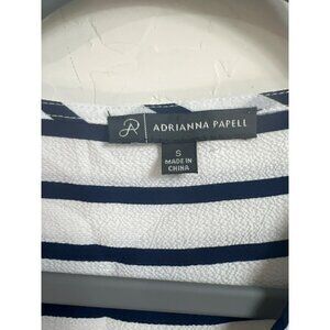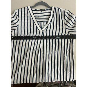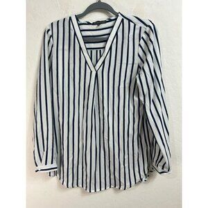 Adrianna Papell S V Neck Blouse Tunic Navy White Stripe Nautical Office Career W