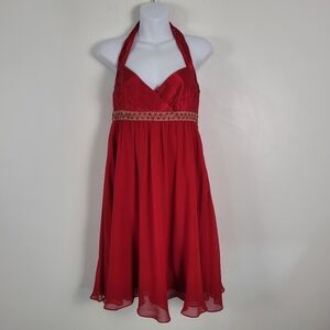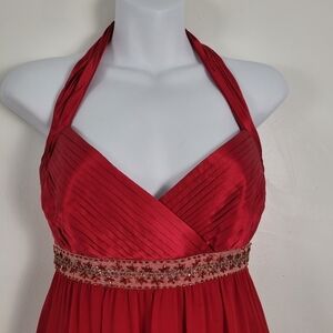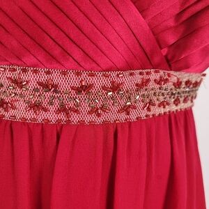 Adrianna Papell Scarlett Red Beaded Waist Pleated Bust Cocktail Dress