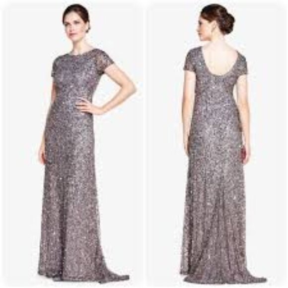 Adrianna Papell Scoop Back Long Dress in Lead New With tags Size 12 Pre-Priced $280