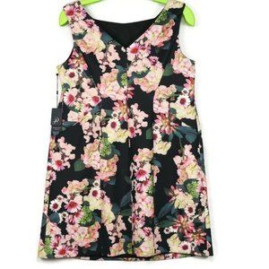 Adrianna Papell Scuba Sheath Dress Black Pink Floral Stretch 20W