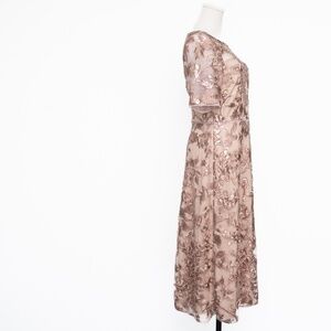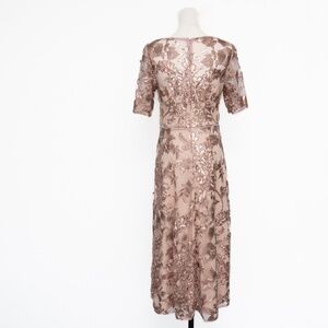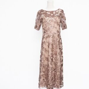 Adrianna Papell. Sequin Embroidered Boat-Neck Midi Dress.