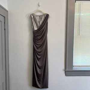 Adrianna Papell Sequin, Satin Draped Formal Gown Dress - Size 4