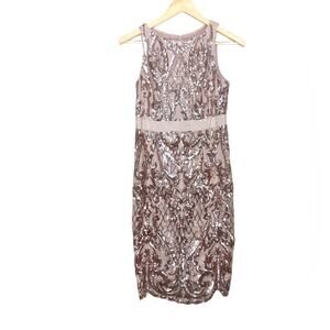 Adrianna Papell Sequin Sheath Blush Pink Knee Length Cocktail Dress Size 2