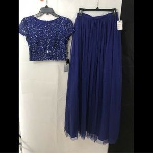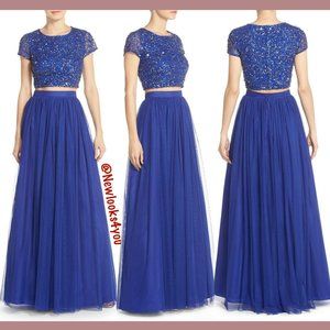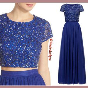 NWD Adrianna Papell Sequin Top & Tulle Ballgown in Neptune Blue [SZ 4 ] #N776