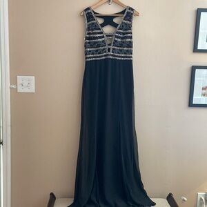 Adrianna Papell - Sequined Cutout Bodice High Slit Maxi Dress