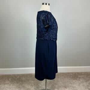 Adrianna Papell Sequined Lace Cocktail Dress Size 20W Blue Short Sleeve Sheath
