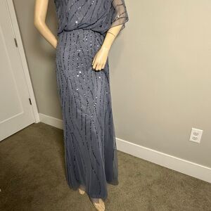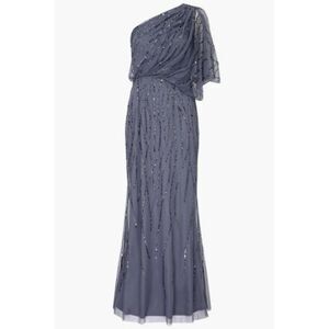 Showcase your enviable fashion sense in this sparkling gown from Adrianna Papell designed with a chic one-shoulder silhouette.