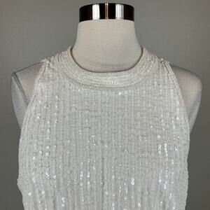 Adrianna Papell Sequined Sleeveless Halter Sheath Cocktail Dress White Size 10