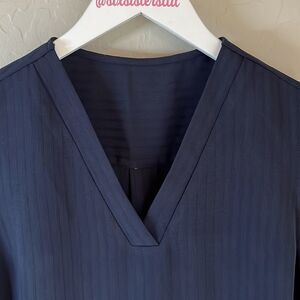 Adrianna Papell Shanghai Silk Navy Blue Size Medium. Sleeveless With V-neck.