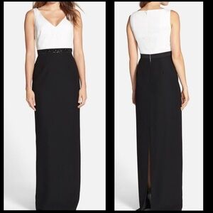 Adrianna Papell - Sheath Crepe Maxi Dress. Sz. 10 Black&White