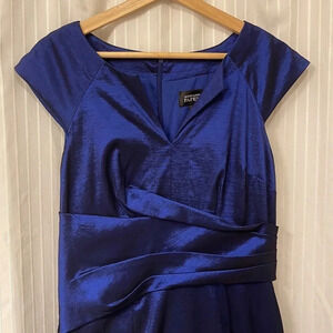 Adrianna Papell - Shimmery Blue - Cocktail V-neck Dress - Capped Sleeve - Size 8 - Gently Used