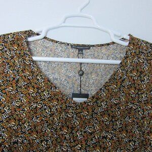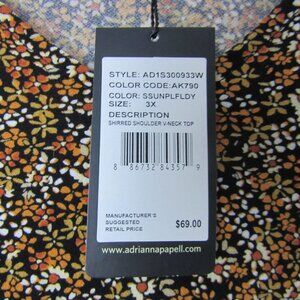 Adrianna Papell Shirred Shoulder V-Neck Sunflower Top NWT Womens Plus 3x