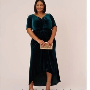 Adrianna Papell Shirred Velvet Gown with Elbow - Length Sleeves 14 Wedding Guest