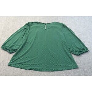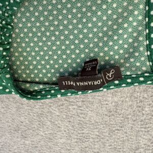 Adrianna Papell Shirt Womens 3X Green Polkadot Long Sleeve Ruffles Stretch