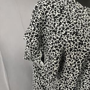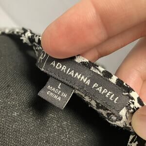 Adrianna Papell Shirt Womens Large Black White Floral Print Short Sleeve Blouse