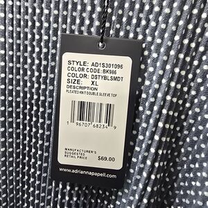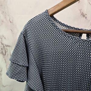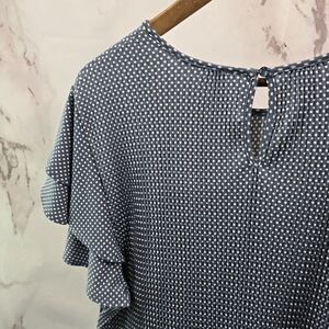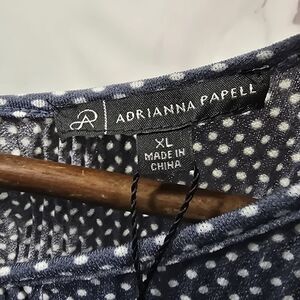Adrianna Papell Shirt Womens XL Navy White Spot Dot Blouse Double Sleeve Ruffle