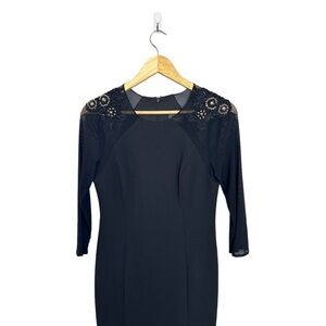 Adrianna Papell - Short Black Crepe Dress Sheer sleeves beaded embroidered 2
