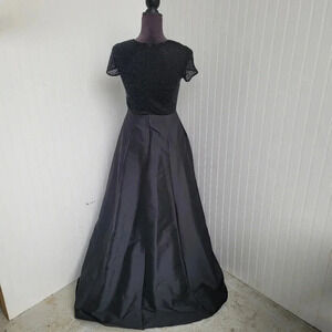 Adrianna Papell Short Sleeved Beaded Long Taffeta High Low Skirt Dress Silk Sz 2