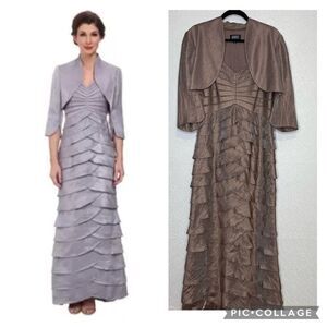 Adrianna Papell Shutter Pleat Shimmer 2 Piece Gown w/ Bolero 14P