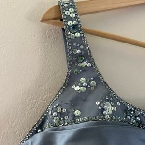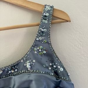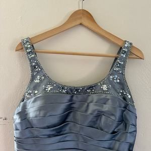 Adrianna Papell Shutter Pleats Cocktail Dress Light Blue Beaded Detail Size 12