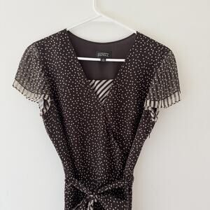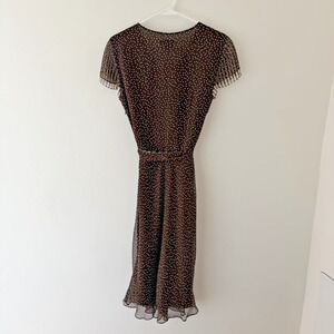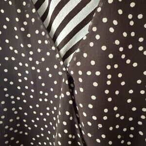 Adrianna Papell Silk Faux Wrap Dress Brown Polka Dot Pleated Sleeves Size 10