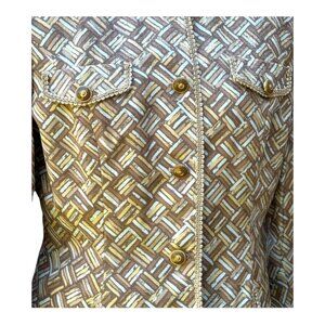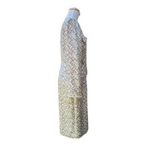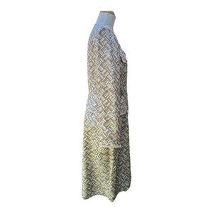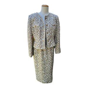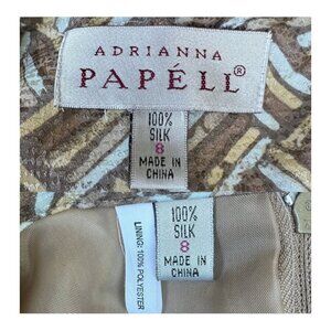 Adrianna Papell Silk Jacket & Skirt Set Geometric Print Size 8 Beige/Brown