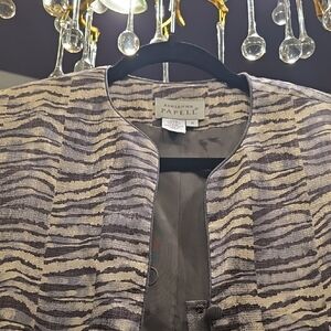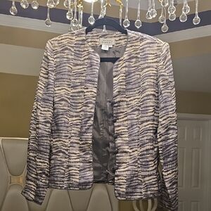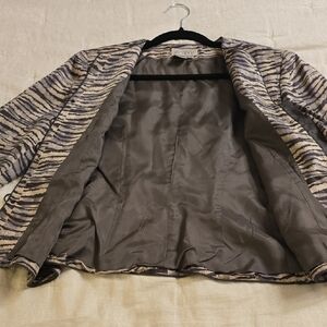 Adrianna Papell Silk Women's Patterned Blazer - Gray and Silver