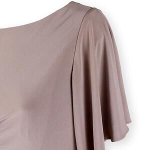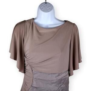 Adrianna Papell Silver Beige Shutter Skirt Cocktail Dress 4. Round neck, butterfly short sleeves, sheath dress. Silvery, shimmery shutter skirt. Gathered waist. Excellent used condition.